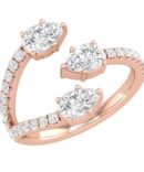 Three Pear shaped diamonds of 0.30 ct each artistically placed at the tip of three separate bands.