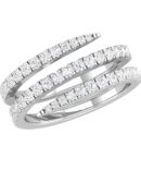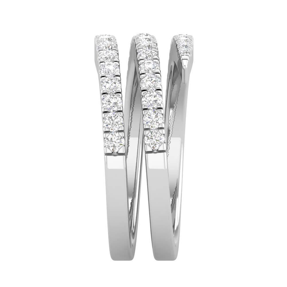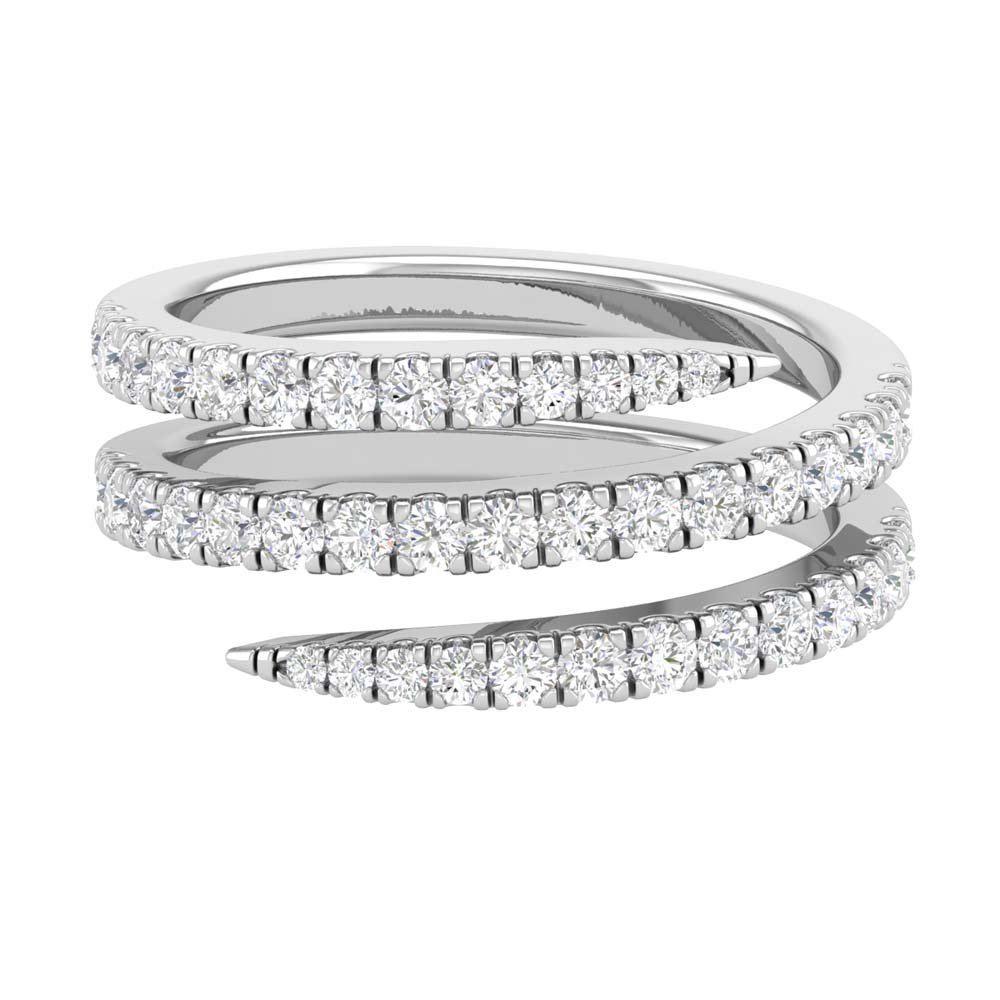 Three rows elegantly wrapped around the finger, a gleaming showcase of each white diamond set in 14kt gold. This ring is an everyday staple with one-of-a-kind elegance.
