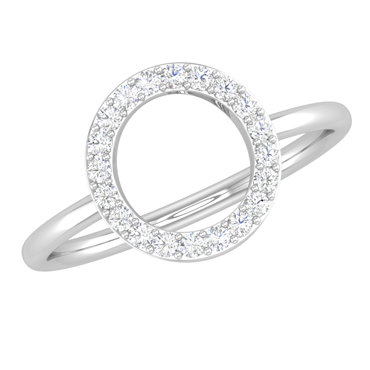 A ciurcualr disc of diamonds coming together and radiating brilliance around your finger