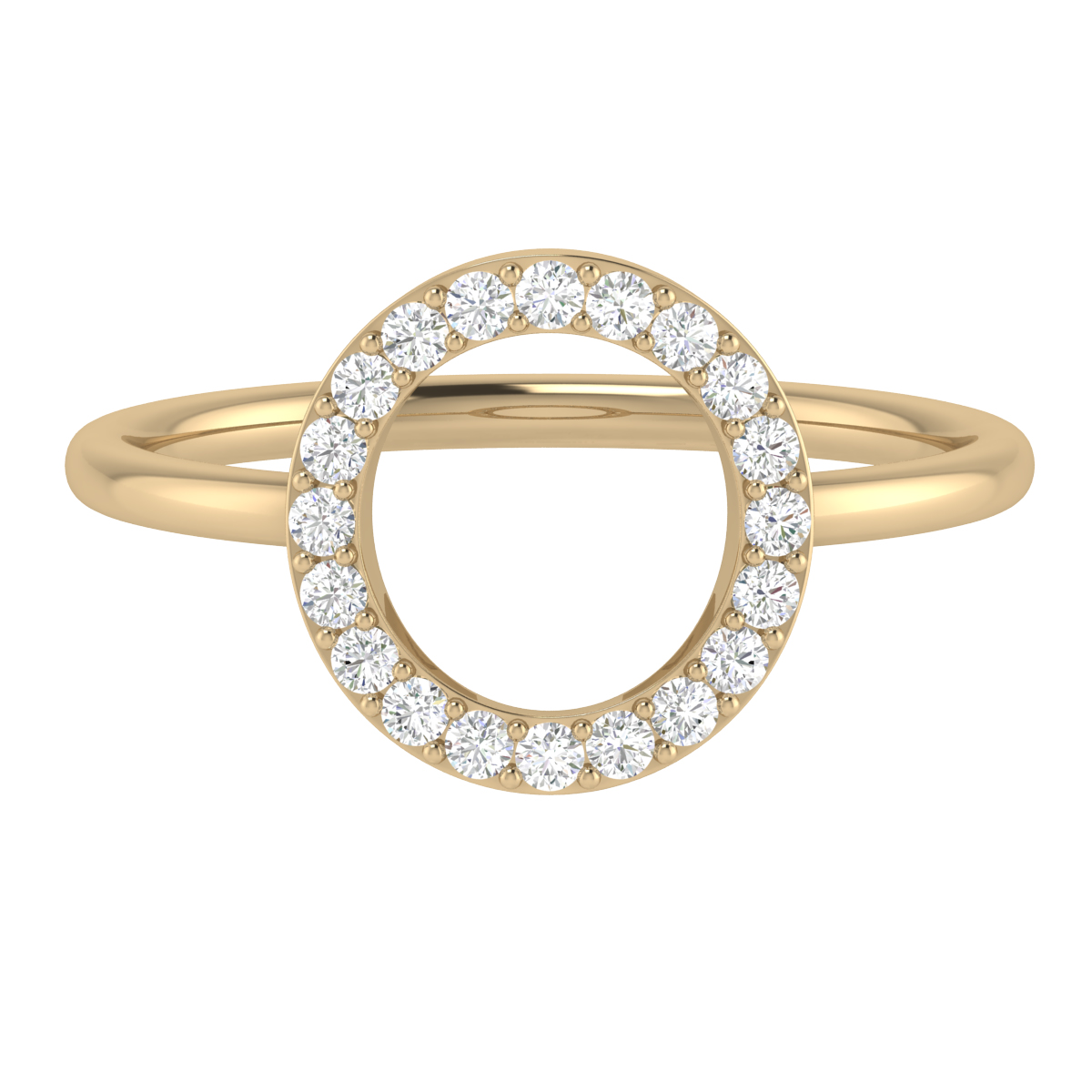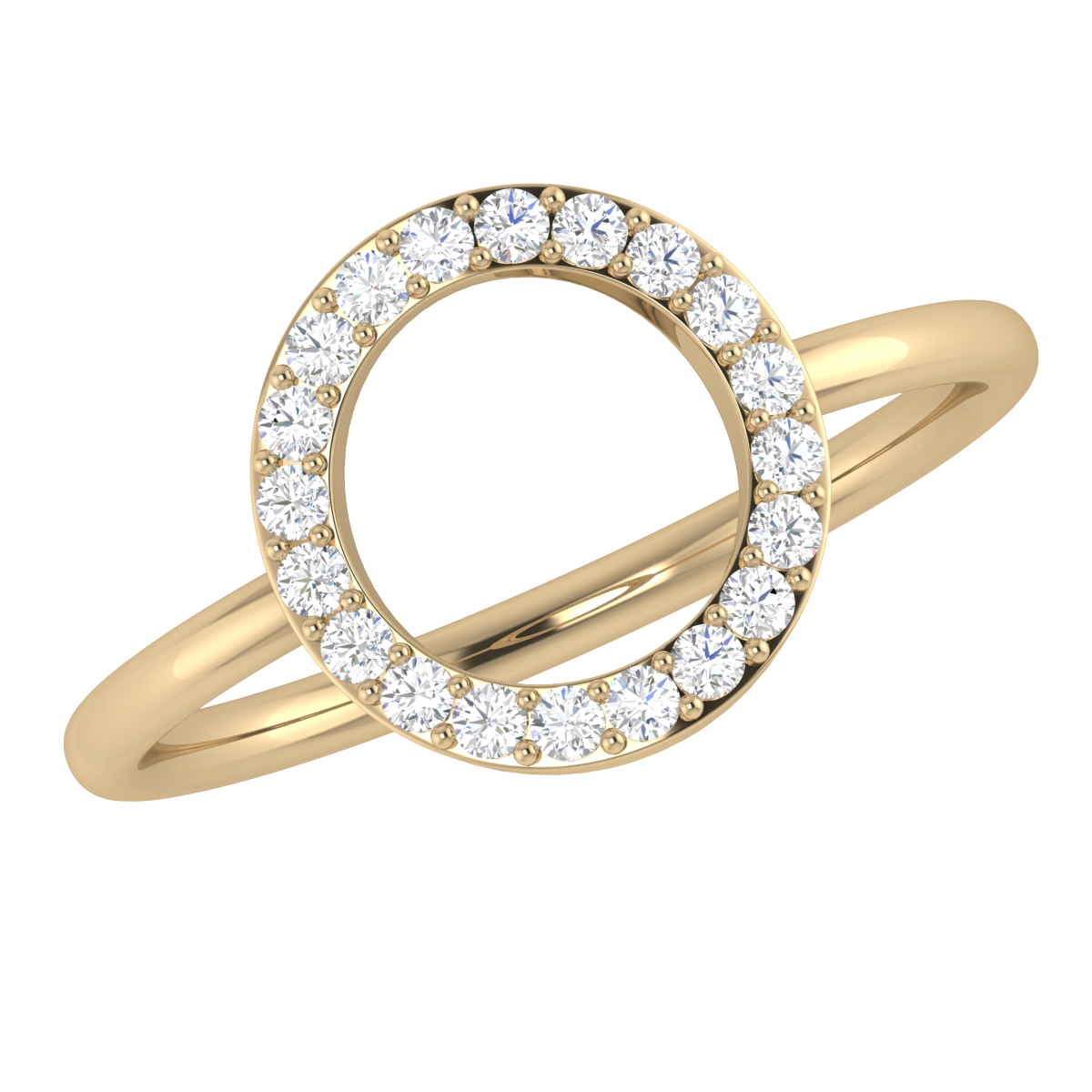 A ciurcualr disc of diamonds coming together and radiating brilliance around your finger