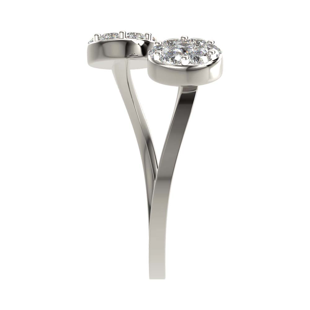 A modern ring with 2 diamond clusters set artistically to shine with every movement