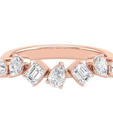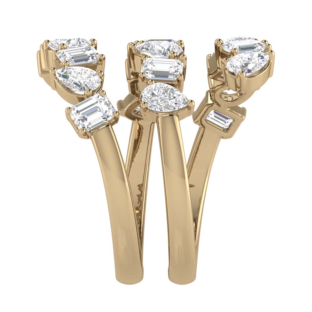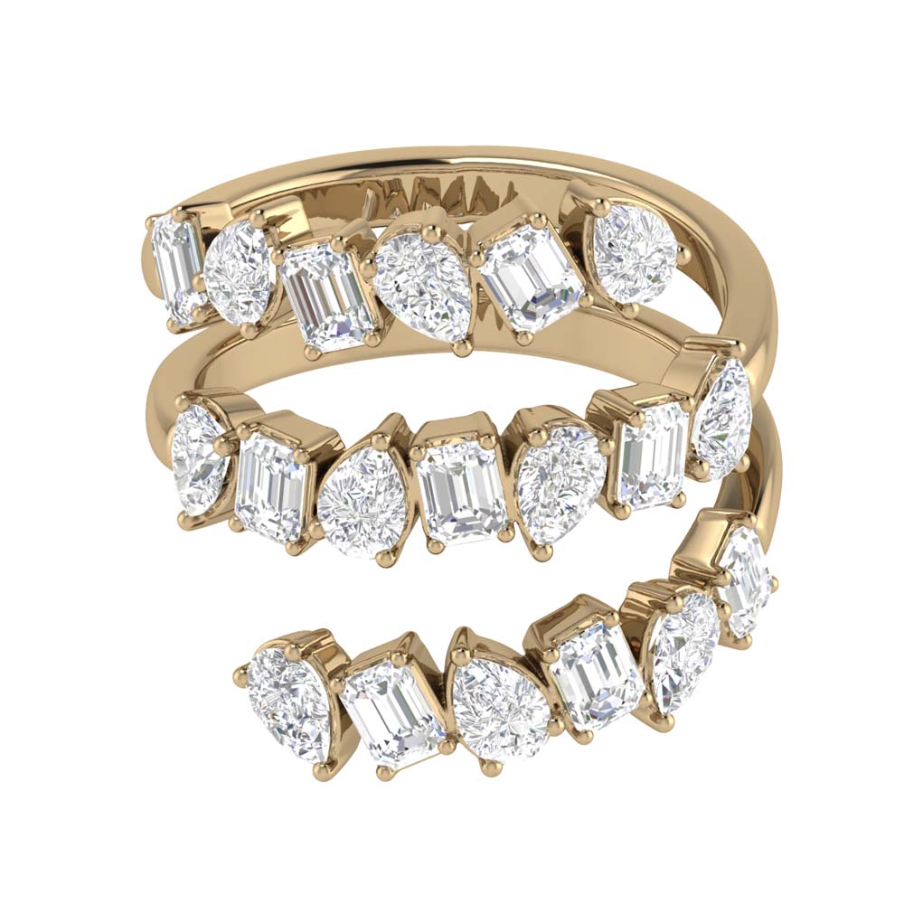 19 Emerald and Pear shaped diamonds alternating to wrap around your finger in this elegant design.