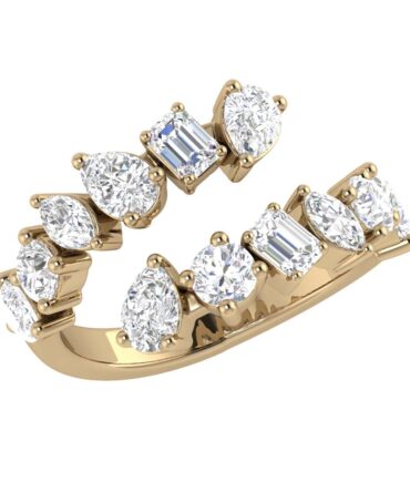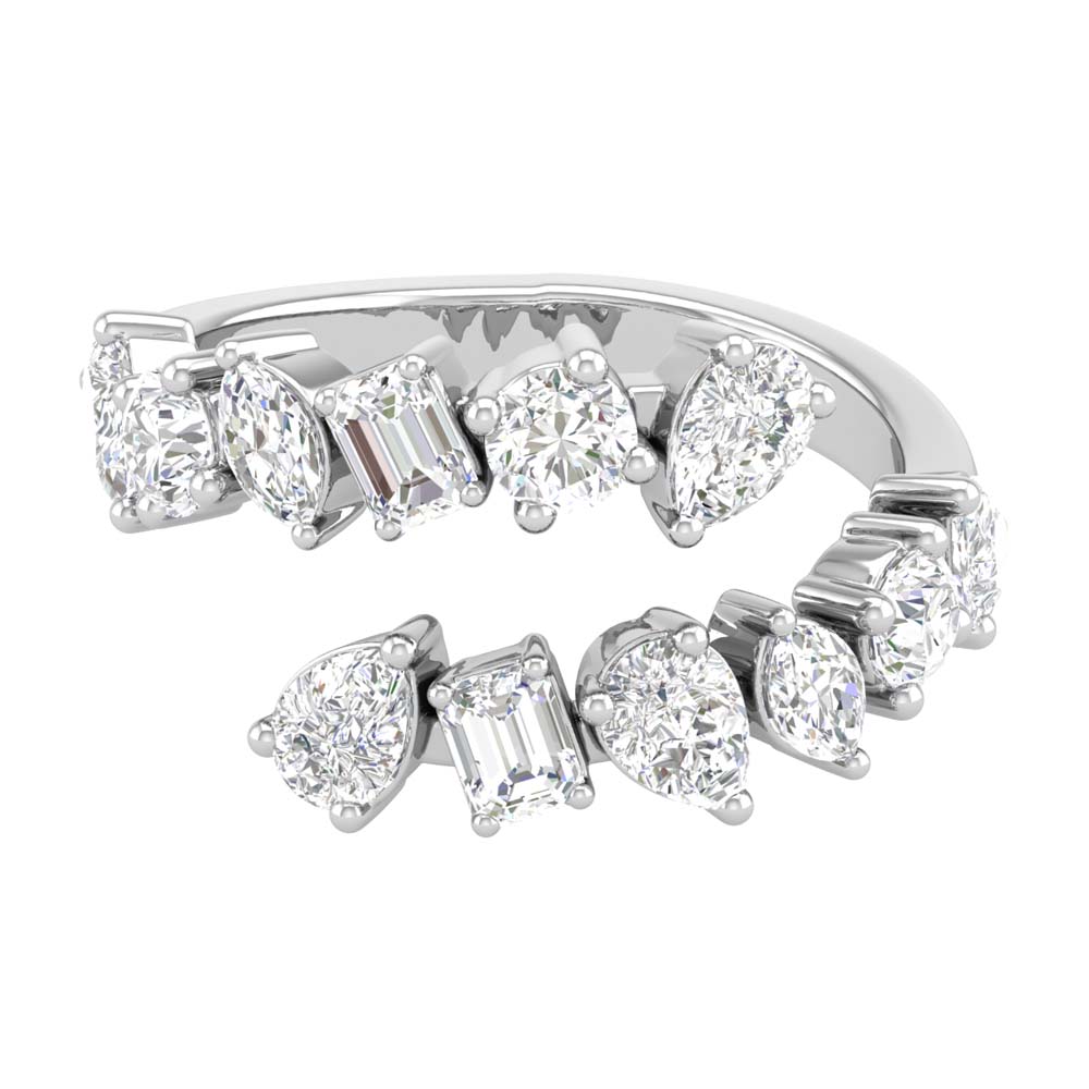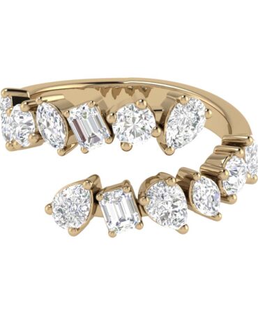 Our signature Multi Shape Twist Ring features 12 fancy shaped diamonds set by hand in 14kt gold. This delicate and dynamic setting offers an unconventional alternative to the classic diamond ring.