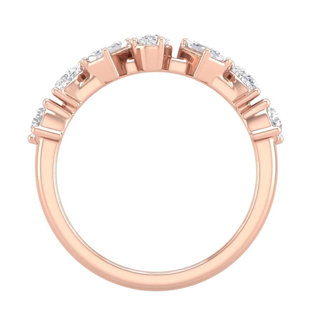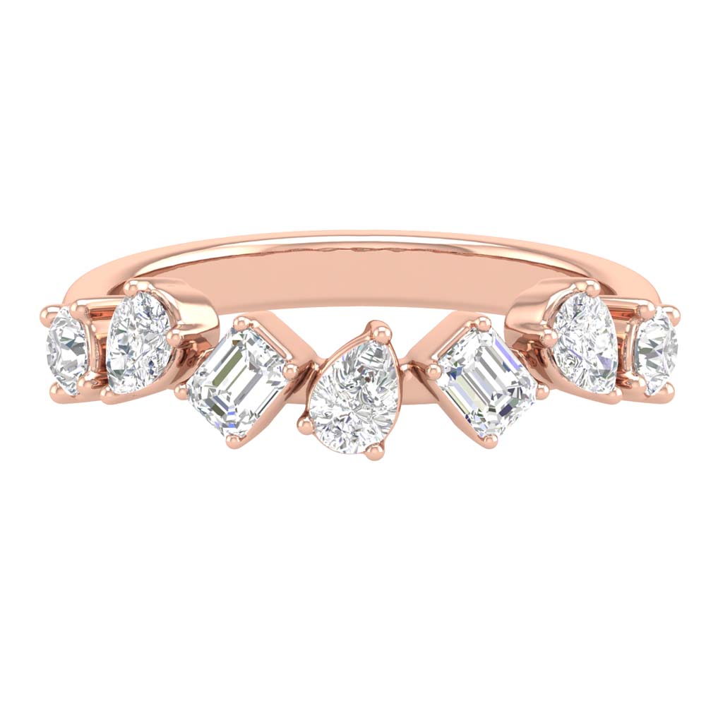 Eight fancy shaped diamonds set by hand in 14kt gold. Due to its modernistic allure this contemporary ring can be an alternative to the classic eternity band.