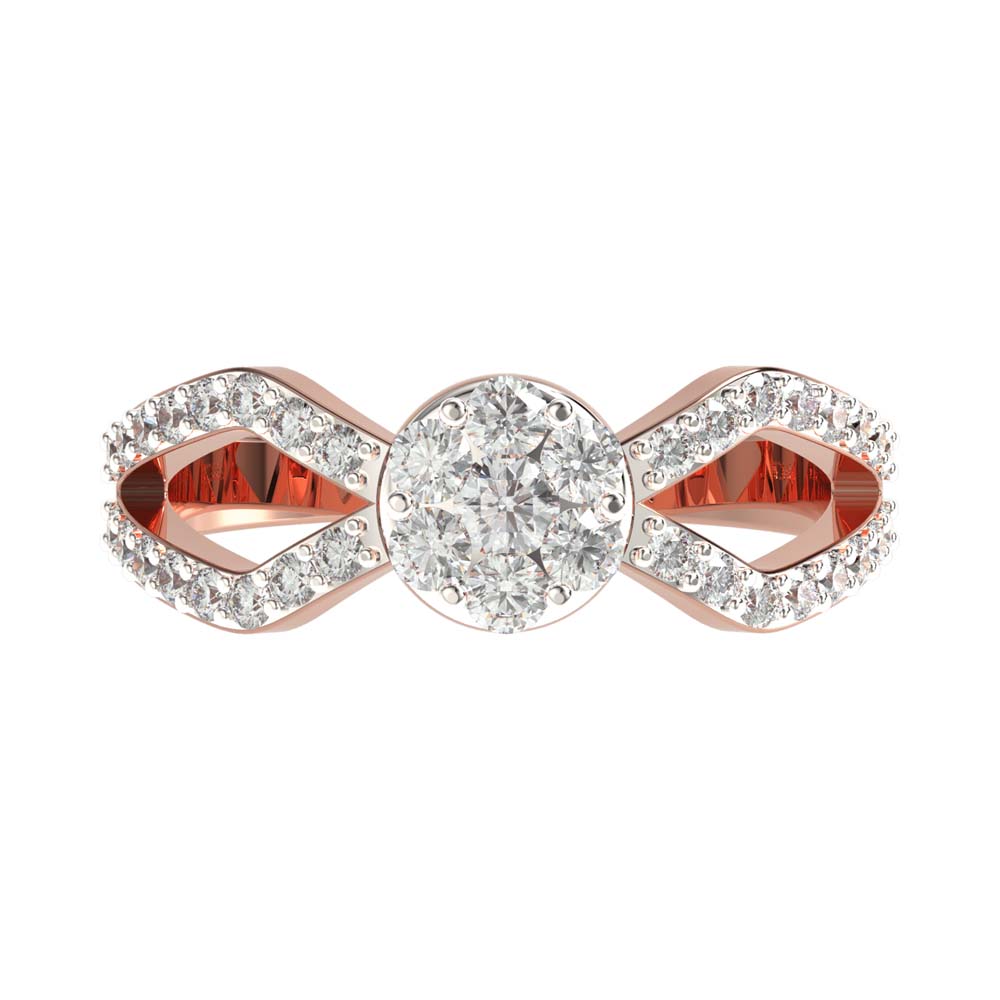 A seamless deign of brilliantly shining diamonds set in a cluster and opening into a split band on either side